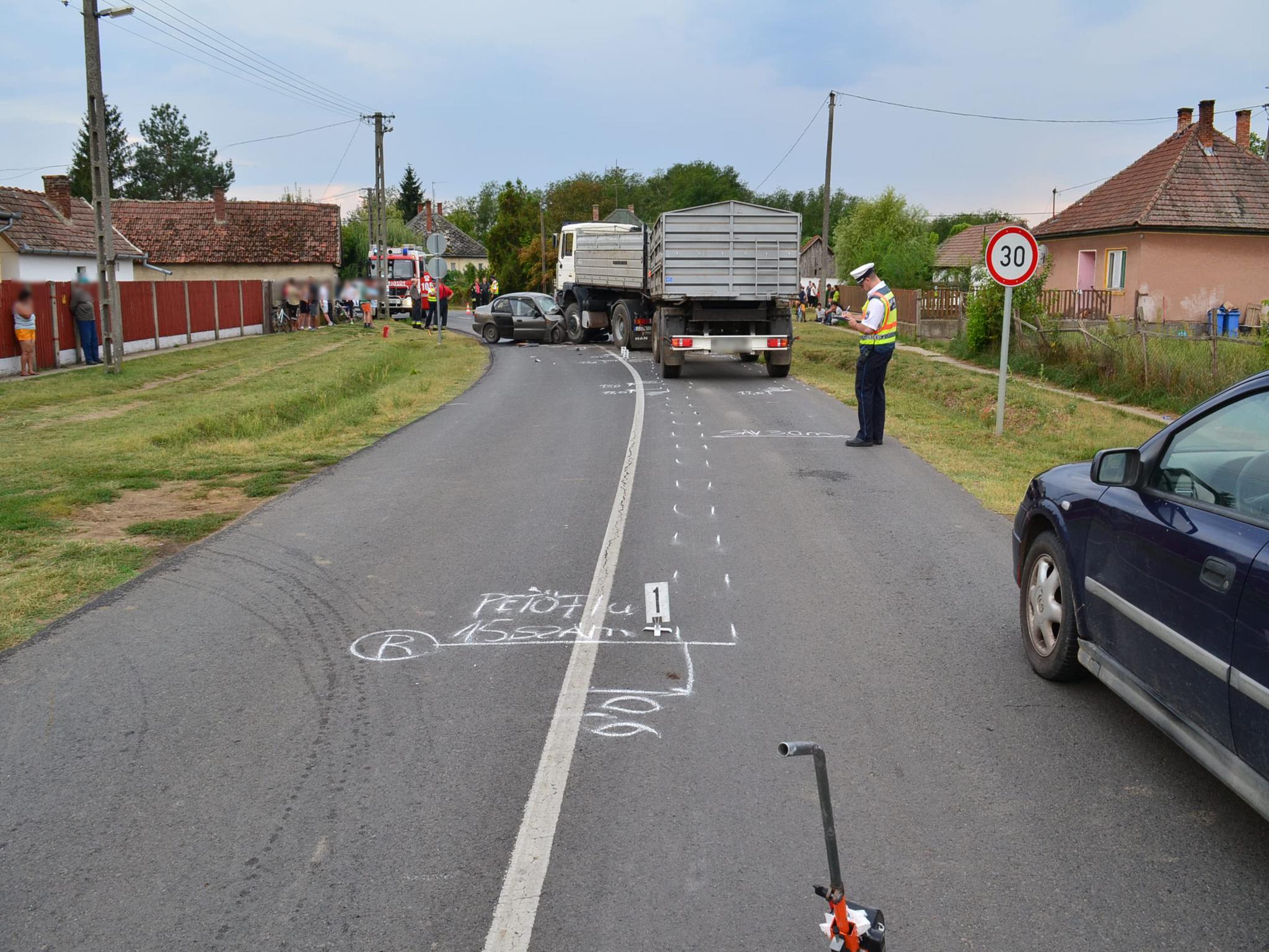 Egy 38 éves férfi az általa vezetett személygépkocsival közlekedett 2018. szeptember 3-án 16 óra 15 perckor Újlétán, a Petőfi utcában. A sofőr egy jobbra ívelő útkanyarulatban járműve sebességét nem az út vonalvezetésének megfelelően választotta meg és ennek következtében átsodródott a szemközti forgalmi sávba, ahol összeütközött egy tehergépkocsival.