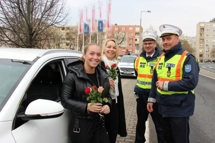 Virággal köszöntötték a szabályosan közlekedő női járművezetőket a szabolcsi rendőrök.
