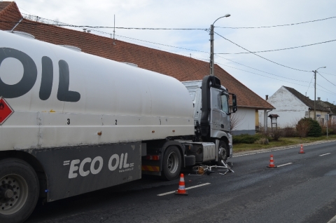 Kaposfőn, 2017. március 6-án 9 óra 22 perc körül a Kossuth Lajos utcában a kijelölt kerékpárúton egy kerékpárral közlekedő nő figyelmen kívül hagyta az úttest előtt kihelyezett „Elsőbbségadás kötelező” jelzőtáblát és összeütközött egy tehergépkocsiból és a hozzácsatolt félpótkocsiból álló járműszerelvénnyel. A baleset alkalmával a kerékpáros - az elsődleges orvosi vélemény alapján - 8 napon belül gyógyuló könnyű sérülést szenvedett.