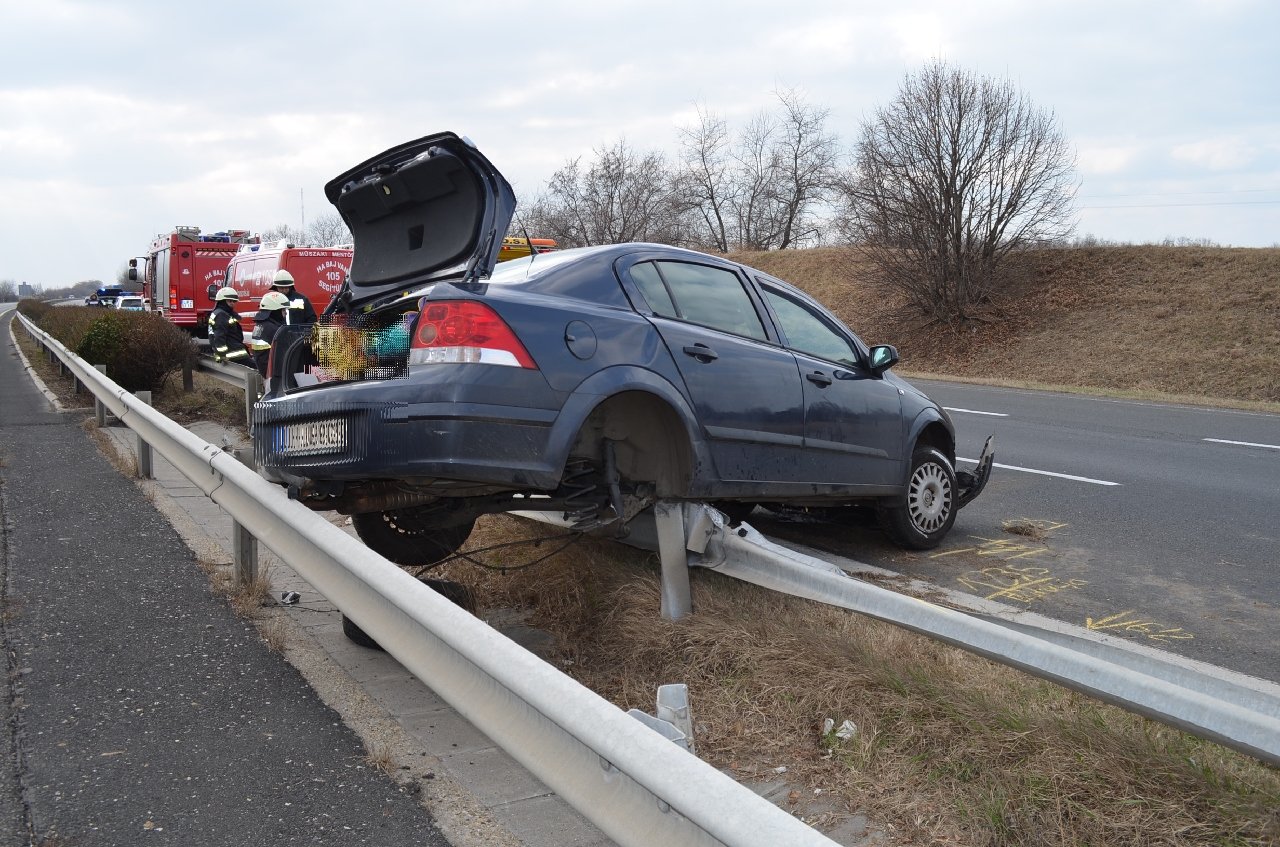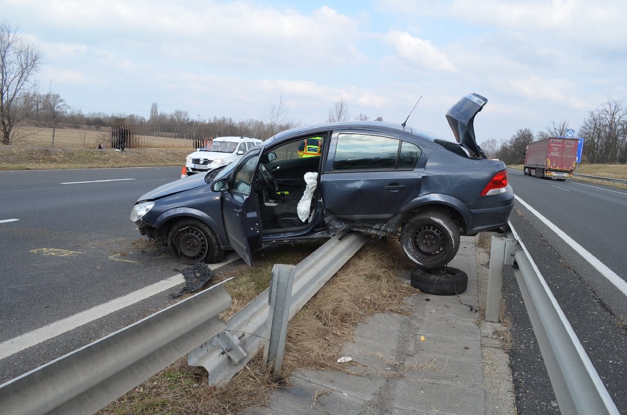Az M7-es autópálya jobb pályatest 98+200 kilométerszelvényben 2017. március 11-én 11 óra 35 perc körül egy személygépjármű vezetője sávváltása közben nem adott elsőbbséget az belső forgalmi sávban közlekedő személygépkocsi vezetőjének, aki az ütközés elkerülése végett balra kormányozta gépkocsiját, majd a szalagkorlátnak ütközött. A baleset következtében személyi sérülés nem történt, anyagi kár keletkezett.
