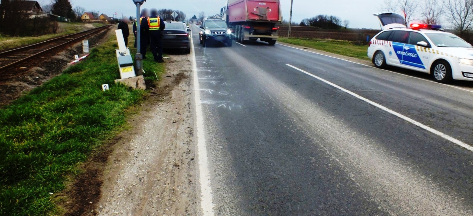 A Berettyóújfalui Rendőrkapitányság közlekedés biztonsága ellen gondatlanságból elkövetett vétség elkövetésének megalapozott gyanúja miatt folytatott eljárást egy hosszúpályi lakossal szemben. A nyomozás adatai szerint a férfi teherautójával közlekedett a Mikepércs és Sáránd közötti vasúti átjáróban 2020. március 13-án 13 óra körül. A férfi a záróvonal ellenére egy másik autó előzésébe kezdett és nem győződött meg arról, hogy a járműve előzését egy személygépkocsi már megkezdte. Az Audi vezetője azért, hogy elkerülje a balesetet, balra kormányozta autóját és nekiütközött a félsorompónak. A közlekedési balesetben személyi sérülés nem történt.