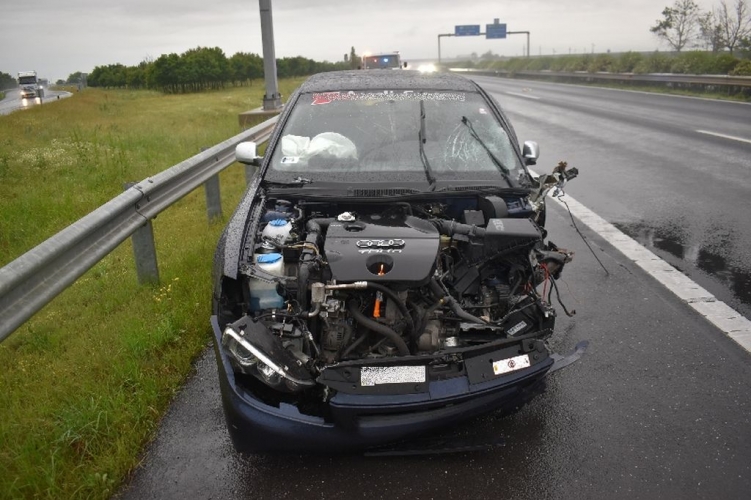 Egy 42 éves győrszemerei férfi közlekedett személygépkocsijával az M1-es autópályán Hegyeshalom felől Mosonmagyaróvár irányába 2023. június 6-án 19 óra 40 perckor. Haladása során – mivel nem az időjárási- és útviszonyoknak megfelelően választotta meg sebességét – a vizes úton megcsúszott, elveszítette irányítását a járműve felett, és előbb szalagkorlátnak ütközött, majd a leállósávban került nyugalmi helyzetbe. A baleset során a gépjárműben anyagi kár keletkezett.