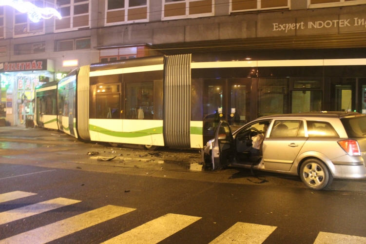 Személyautó ütközött a villamossal
