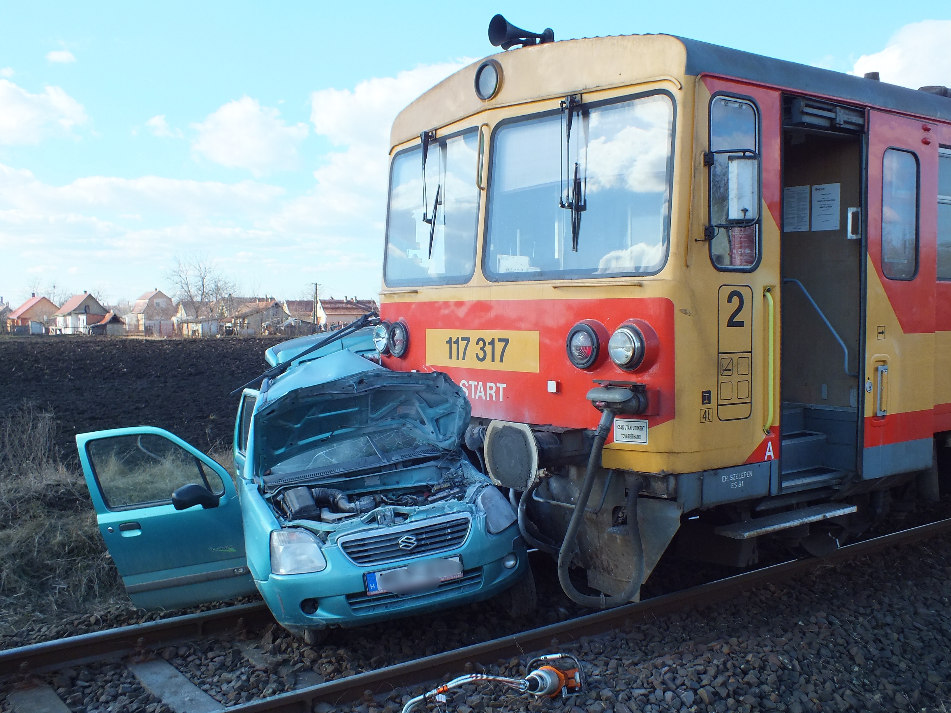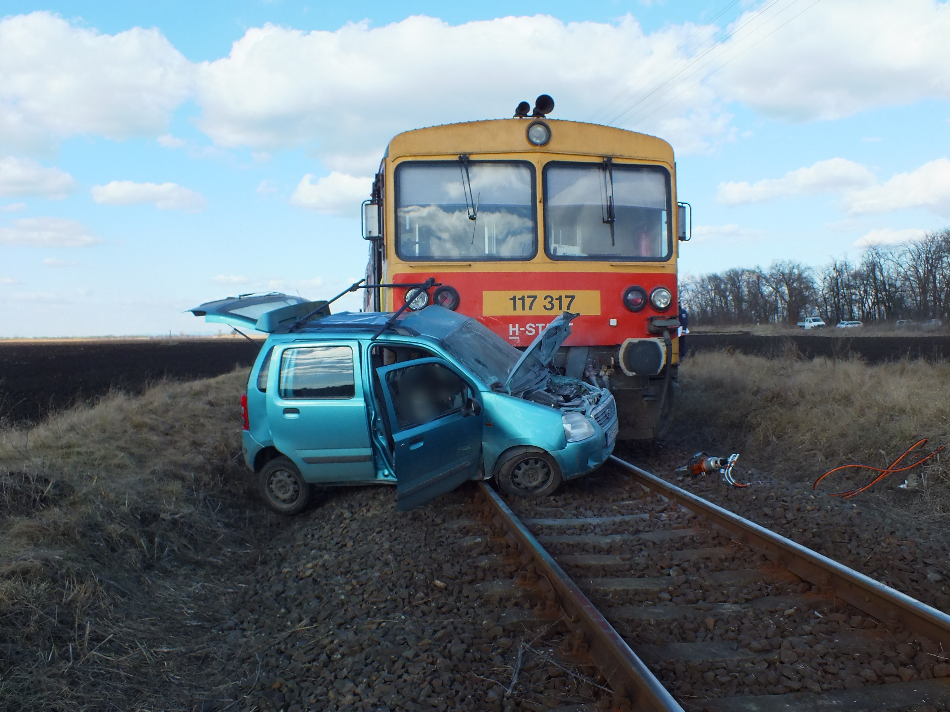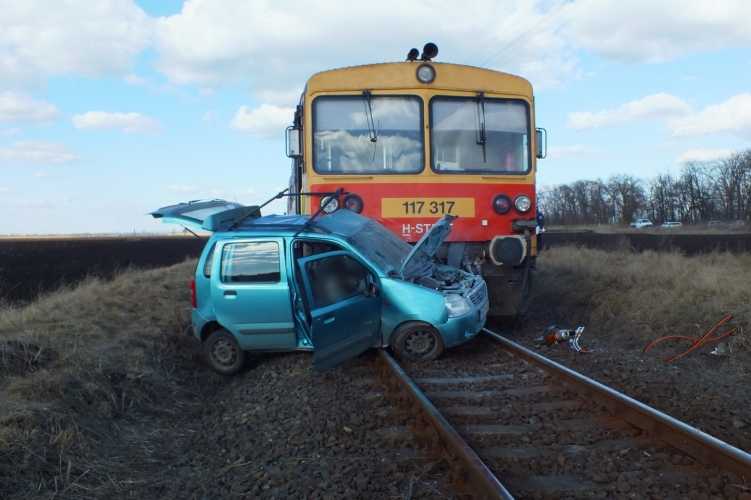 Hajdúvidnél egy személygépkocsi vonattal ütközött össze, egy férfi vesztette életét a balesetben.