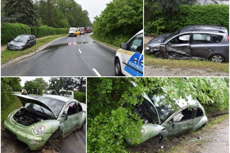 A balesetben az okozó sofőr, illetve két 19 éves utasa megsérült, őket a mentőszolgálat munkatársai kórházba szállították.