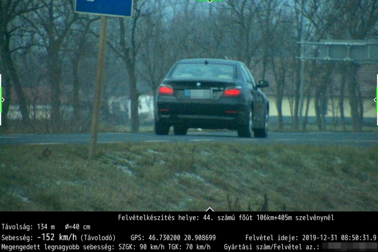 Az elmúlt hónapokban Békés megyében több olyan súlyos baleset történt, amelynek oka a gyorshajtás volt. A rendőrség a szabálytalankodók kiszűrése érdekében folyamatosan ellenőrzi a sebességhatárok betartását. A 44-es számú főúton, Békéscsaba és Kondoros között 2019. december 31-én a délelőtti órákban mért a traffipax. Ezen a napon három óra alatt tizenkét szabálytalankodóról készült képfelvétel, közülük, egy autós 150 km/óránál is gyorsabban hajtott ott, ahol a szabályok 90 km/órás sebességet engednek meg.
