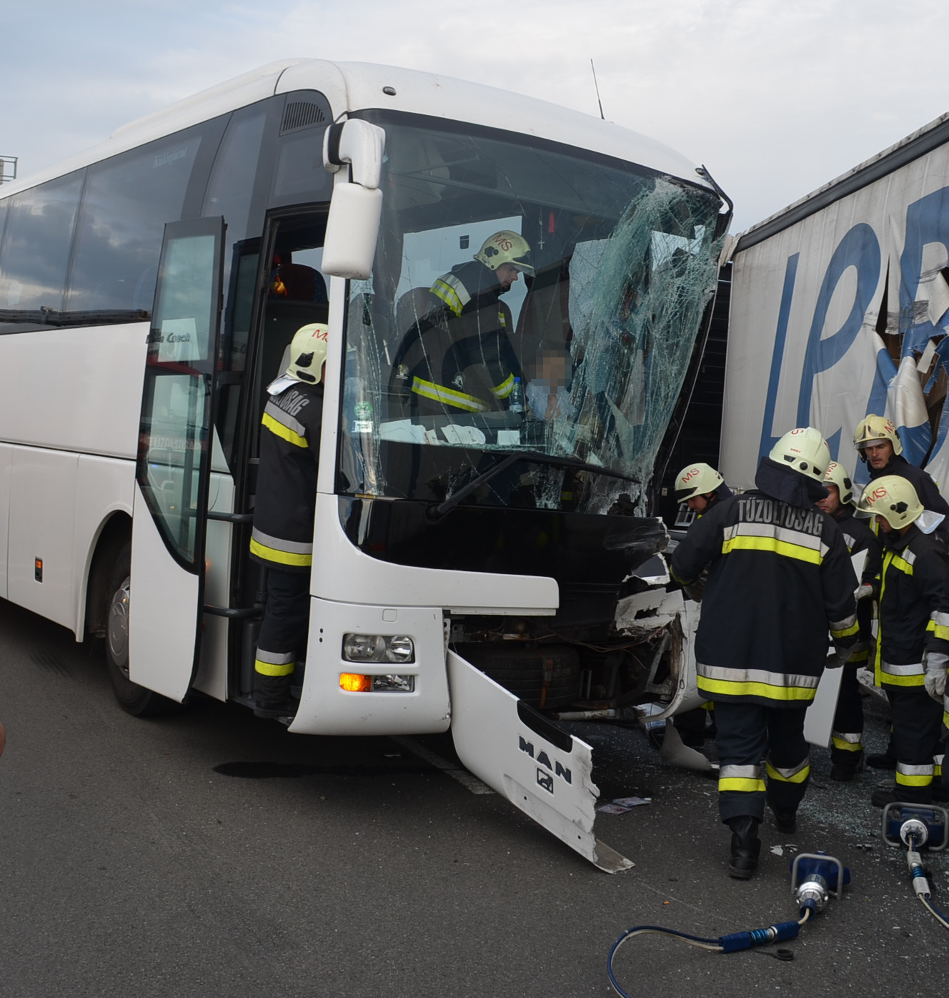 Gyerekeket szállító autóbusz és egy tehergépkocsi ütközött az 57-es főúton Baranyában.
