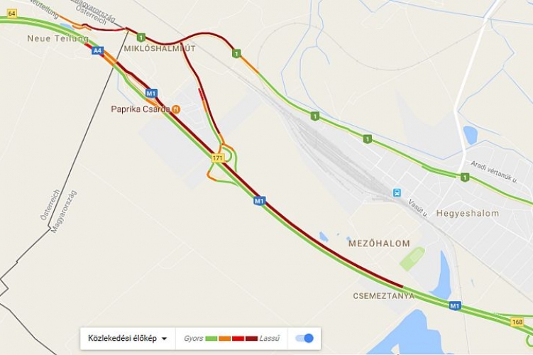 Az erős személygépjármű-forgalom és az osztrák hatóságok szúrópróbaszerű ellenőrzése miatt - 2017. március 15-én 11 órára - több, mint 2 kilométeres torlódás alakult ki az M1-es autópályán, Hegyeshalom közelében. A megnövekedett forgalom miatt a közlekedőknek a határátlépési pontnál történő áthaladás lassulására kell számítani.