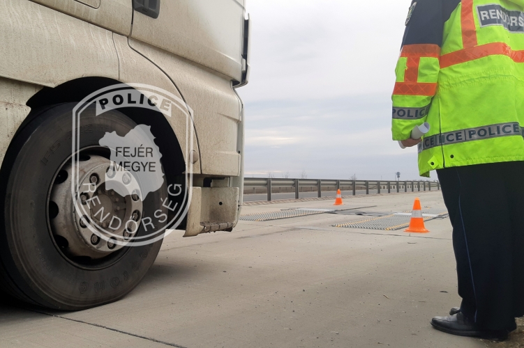 Tehergépjárműveket ellenőriztek a Fejér Megyei Rendőr-főkapitányság és a Magyar Közút Nonprofit Zrt. munkatársai a 62-es számú főúton.