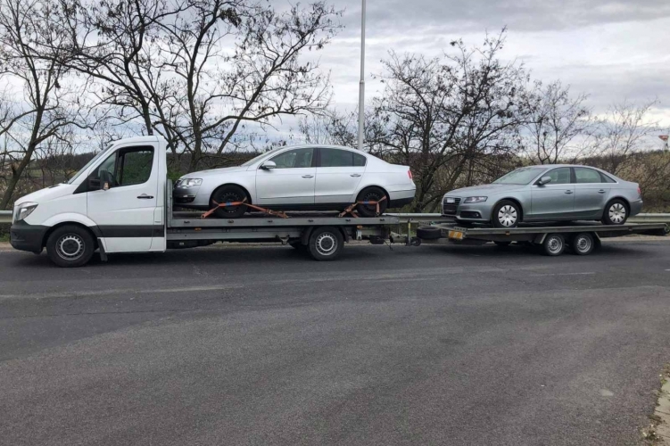 Az M0 autóút Annahegyi pihenőnél igazoltatták a rendőrök 2021. április 11-én délelőtt azt a román honosságú járművet, melynek sofőrje két gépkocsit szállított az utánfutón.