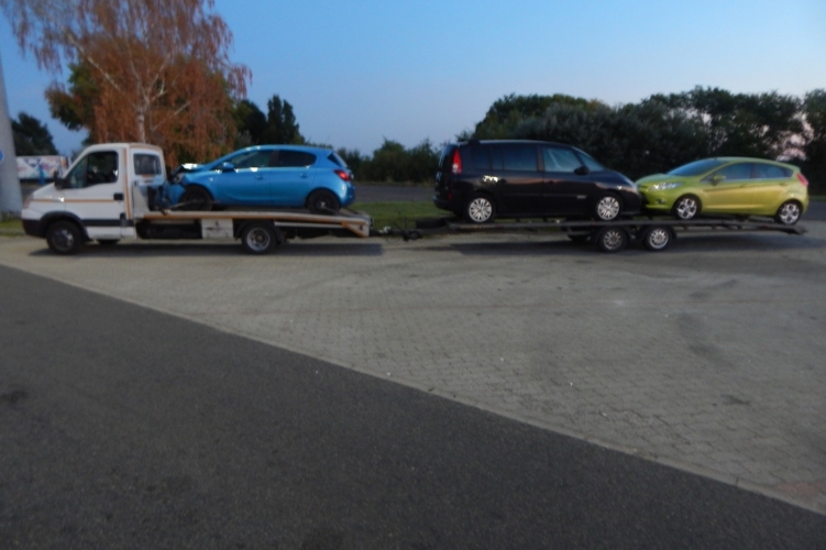 Három személyautót, ebből kettőt az utánfutóján szállított egy bolgár rendszámú tehergépkocsi vezetője. A gyulai közúti határátkelőhelyen akart kilépni az országból, amikor kiderült, hogy a járműszerelvény túlsúlyos és emiatt balesetveszélyes is.