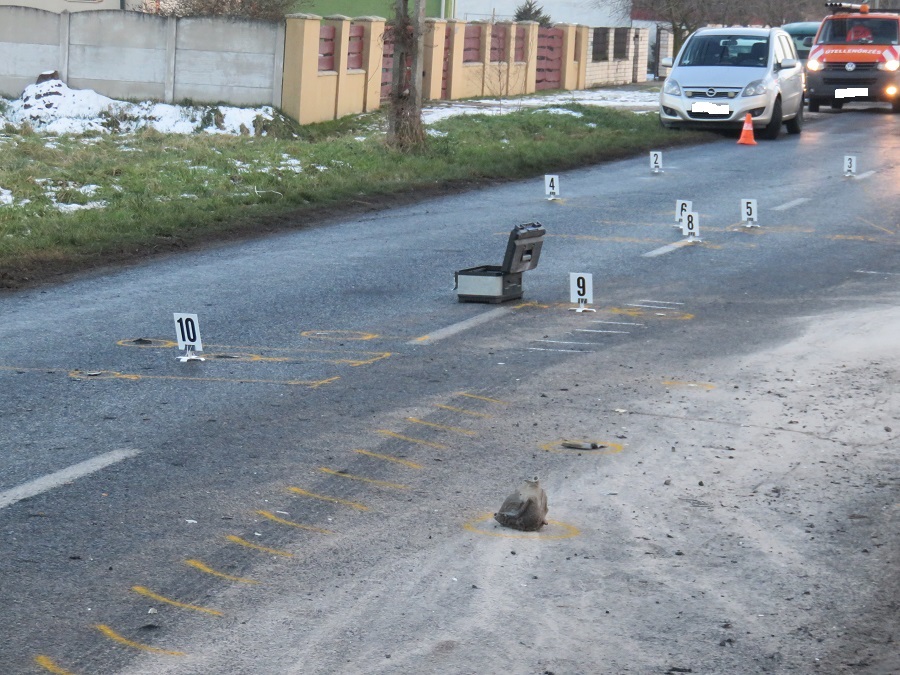 Befejeződött a helyszínelés Tatán, ahol 2016. január 8-án 15 óra körüli időben halálos kimenetelű közúti közlekedési baleset történt. A jelenlegi adatok szerint egy Naszály felé haladó autóbusz és egy vele azonos irányba tartó segédmotoros-kerékpár ütközött össze eddig tisztázatlan körülmények között. A balesetben a segédmotoros-kerékpár vezetője olyan súlyos sérüléseket szenvedett, hogy a helyszínen életét vesztette. A baleset körülményeit a Tatabányai Rendőrkapitányság Közlekedésrendészeti Osztálya vizsgálja.