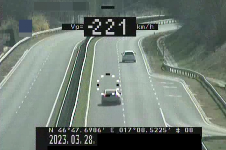 A rendőrök 2023. március 28-án 15 óra 30 perckor Hévíz közelében, a 760-as számú főúton mérték be egy személyautó vezetőjét, aki a megengedett 90 km/h helyett, 221 km/h-val száguldozott. A forgalmas útszakaszon a sofőr ezzel a felelőtlen magatartásával nemcsak a saját, de mások életét, testi épségét is veszélyeztette. A gépkocsi üzembentartója az elkövetett szabályszegés miatt 300 ezer forint közigazgatási bírságra, és nyolc közúti közlekedési előéleti pontra számíthat.