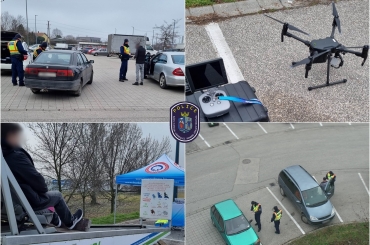 Közlekedésrendészeti ellenőrzést tartottak Kecskeméten a légtérből, valamint a szárazföldön. A szabálytalankodóknak szimulátorral mutatták be a biztonsági öv elmulasztott használatának következményeit.
