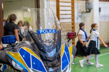 A Miskolci Görögkatolikus Általános Iskolánál is rendőrök vigyáztak a tanévet megkezdő iskolásokra, ahogyan tették ezt Borsod-Abaúj-Zemplén megye több pontján.