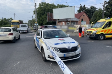 Egy autóbusz és egy kerékpáros ütközött a főváros XXI. kerületében.