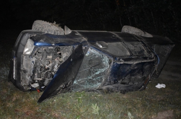 Járművek az árokban, villanyoszlopnak ütközve, fejük tetején