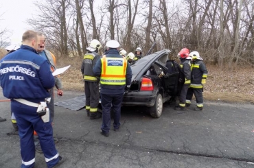 Tatabánya térségében az 50-es kilométerszelvénynél egy személygépkocsi fának csapódott.