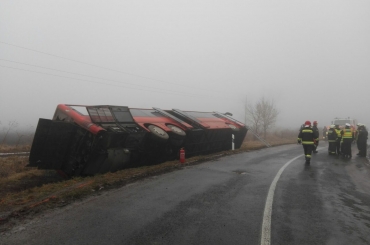 Árokba borult egy autóbusz Kisláng közelében, ezért teljes útlezárás van érvényben.