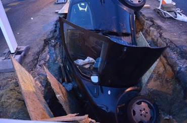 Későn észlelte egy férfi az útfelbontást és munkagödörbe hajtott autójával Győrben.