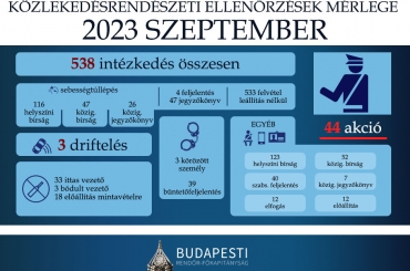 A budapesti rendőrök 2023 szeptemberében 44 alkalommal tartottak ellenőrzést a főváros útjain a balesetek, az illegális gyorsulások, „driftelések” és engedély nélküli jármű-átalakítások megelőzése, megszakítása és szankcionálása céljából.