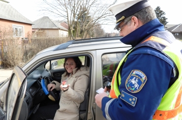 A rendőrök nőnap alkalmából ajándékkal köszöntötték a szabályosan közlekedő járművezető hölgyeket.