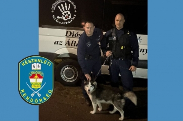 Egy láncra tekeredett, patakban rekedt kutyát mentettek ki a Készenléti Rendőrség miskolci járőrei.