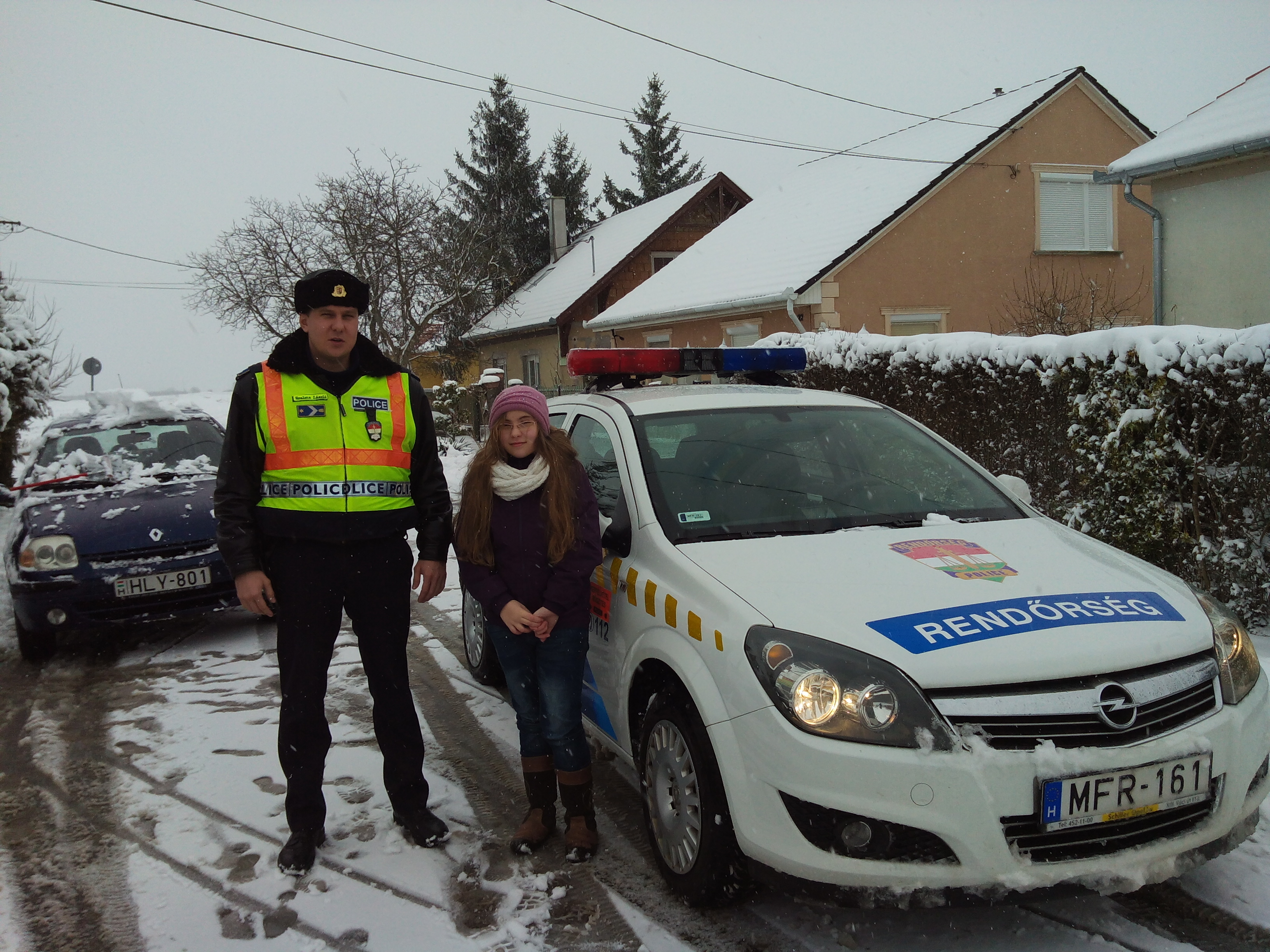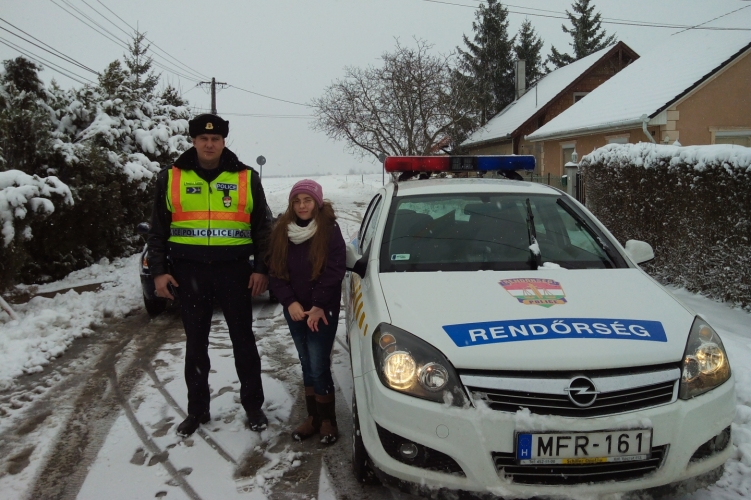 A gépkocsivezető és utasa az út szélén fagyoskodva várta az autómentőt, amikor a rendőr -segítségét felajálva- melléjük lépett. A sűrű hófúvásban a vámosszabadi apuka mellett 11 éves lánya állt dideregve. Időközben a helyszínre érkező autómentő a gépkocsi műszaki mentését megkezdte. A körzeti megbízott a kislányt a rendőrautóba ültette és otthonába vitte, ahol édesanyja várta az átfázott gyereket.