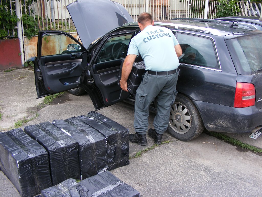 Az M. Attila 36 éves és G. József 52 éves kecskeméti lakosok által hátrahagyott gépjárművet a rendőrök átvizsgálták és ennek során közel 10 ezer doboz magyar adójegy nélküli cigarettát találtak.