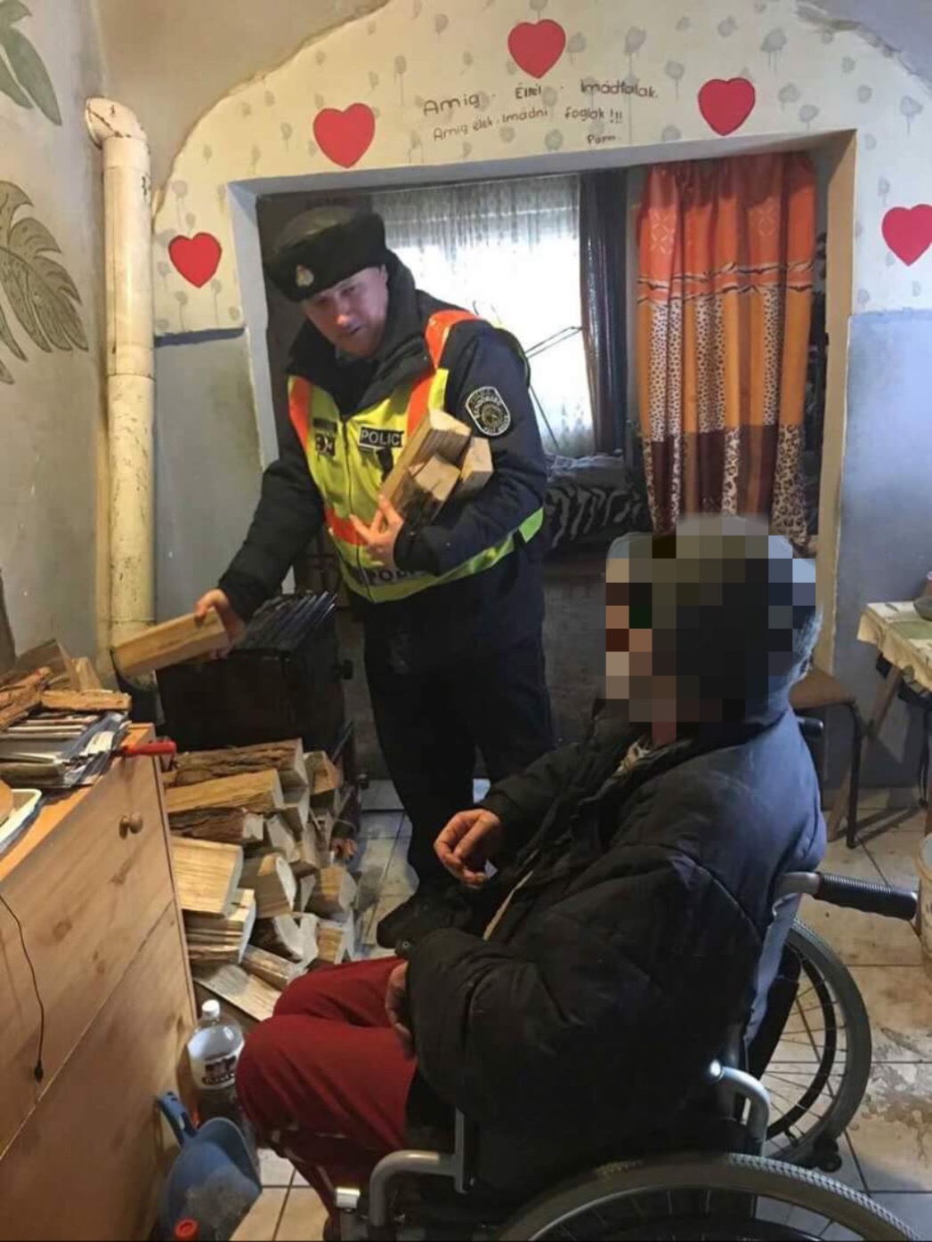 A körzeti megbízott így jutott el egy idős, kerekesszékhez kötött férfihoz, akinek az udvarán és a ház előtti utcarészen elseperte a frissen lehullott havat, majd a házba tűzifát készített be, hogy a férfi az elkövetkező napokban könnyen befűthessen a lakásban és a hideg napokat biztonságban tölthesse.