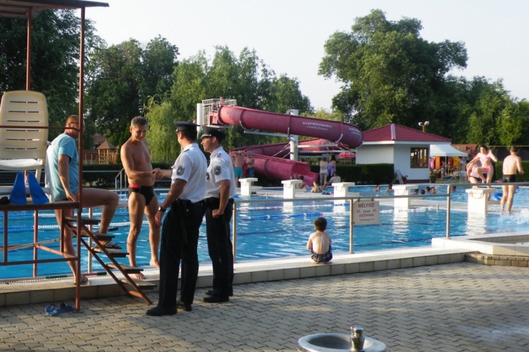 Rendőrök is vigyáznak a pihenni és kikapcsolódni vágyók értékeire és biztonságára a hajdúböszörményi strandon.