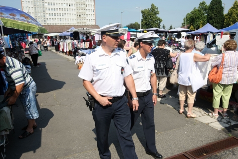 A zalaegerszegi rendőrök rendszeresen járőröznek a helyi piacokon, vásárokon. A helyi CPO-k (community police officer) csatlakoztak hozzájuk.
