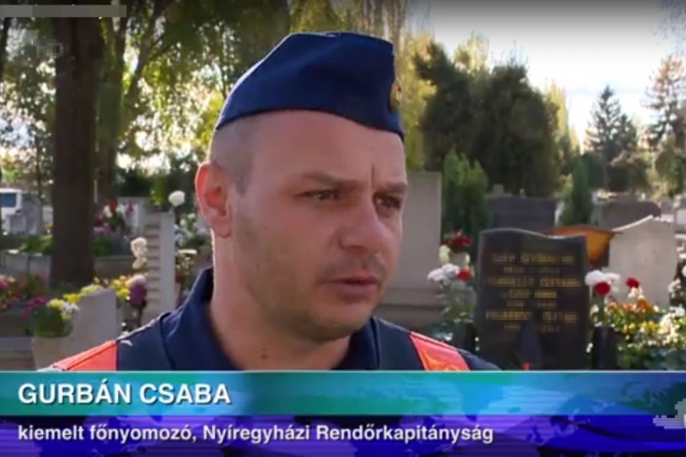 Egyik hozzátartozója sírját ment ki rendezni a nyíregyházi temetőbe 2017. október 30-án egy 56 éves balsai nő. Éppen vízért ment el a közeli kúthoz, amikor visszafelé haladva arra lett figyelmes, hogy egy ismeretlen férfi az általa gondozott sírról eltulajdonította a virágokat. A nő a férfi után eredt, azonban rövidesen szem elől tévesztette. Ekkor vette észre a temetőben éppen szolgálatot teljesítő Gurbán Csaba r. századost, akitől segítséget kért. A Nyíregyházi Rendőrkapitányság bűnmegelőzési munkatársa, aki éppen hasznos vagyonvédelmi tanácsokkal látta el a temetőbe látogatókat, azonnal megkezdte az elkövető felkutatását, közben megerősítést kért kollégáitól. A kiemelt főnyomozónak tíz percen belül a temető környékén sikerült rátalálnia a megadott személyleírás alapján a feltételezett elkövetőre, akit azonnal elszámoltatott. A férfi kezdetben tagadta a lopás tényét, majd a rendőrkapitányságra előállítását követően beismerő vallomást tett. A Nyíregyházi Rendőrkapitányság munkatársai a 49 éves nyírpilisi férfit tulajdon elleni szabálysértés elkövetése miatt szabálysértési őrizetbe vették.