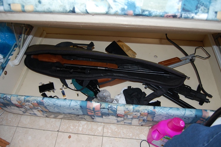 A lakásban lefoglalt fegyvereket és lőszereket fegyverszakértő vizsgálja.