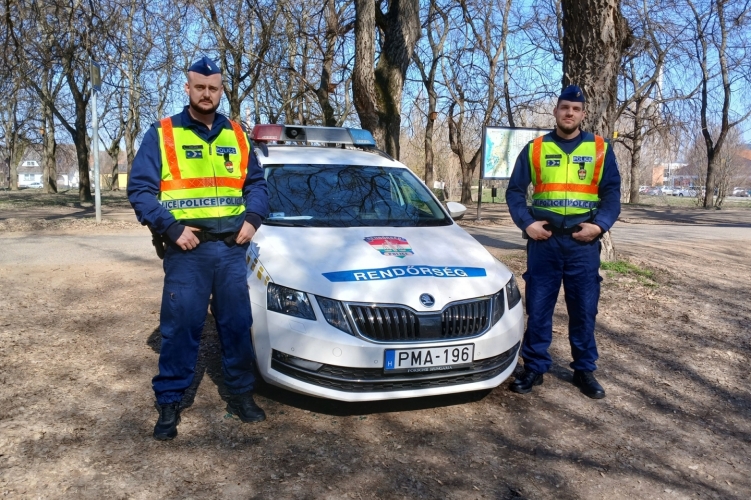 A szolgálatban lévő járőrök – Fehér Viktor László törzsőrmester és Kühn Gábor őrmester – azonnal keresni kezdték a nőt, és este fel is figyeltek egy, a Türr István sétányon álló kocsira, amelynek a vezetőülésében mozdulatlanul ült valaki. Amikor megbizonyosodtak róla, hogy a keresett személyt találták meg, próbáltak vele kommunikálni, ez azonban nem sikerült. Mivel az utastérben több üres gyógyszeres dobozt és egy 10 literes üzemanyag kannát is felfedeztek, az egyenruhások azonnal döntöttek: betörték a kocsi egyik ablakát, és a mentőszolgálat kiérkezéséig biztonságba helyezték a láthatóan rossz állapotban lévő nőt, akit állapota stabilizálását követően a mentők végül kórházba szállítottak.