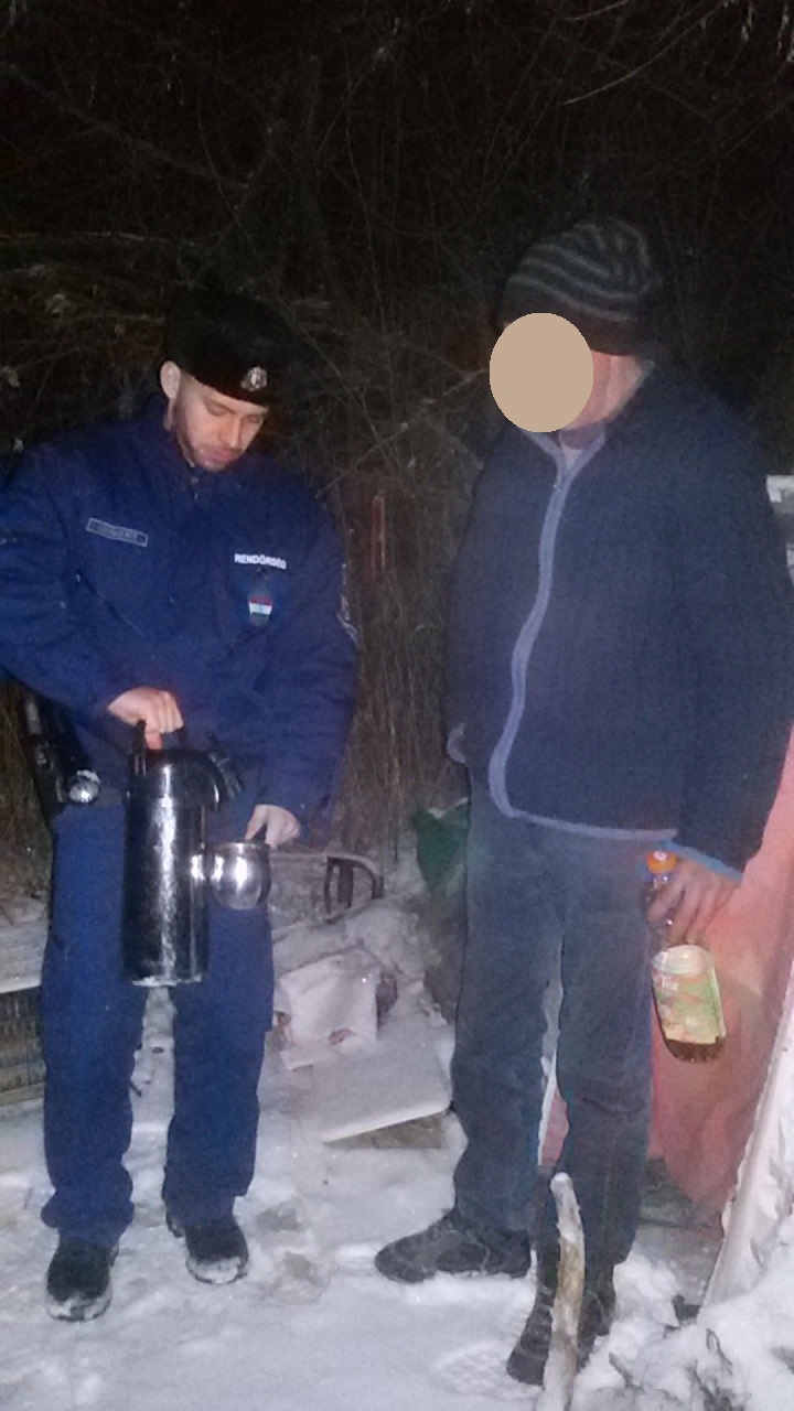 A rendőrök szolgálatuk ellátása során a zord időjárási körülményekre tekintettel kétszer is felkeresték a segítségre szoruló férfit Budakeszi külterületén. A 46 éves férfinak mindkét alkalommal forró teát adtak és tájékoztatták arról, hogy hol töltheti biztonságban a következő napokat.