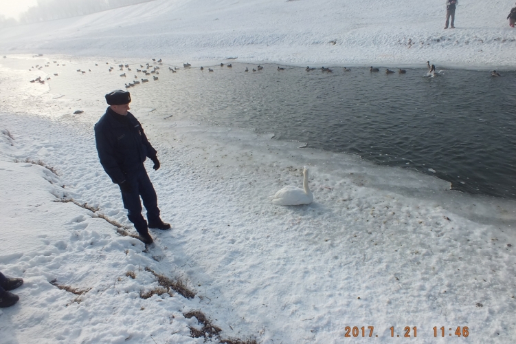Egy helyi lakos tett bejelentést a rendőrségre 2017. január 21-én 10 óra 54 perckor, hogy a szolnoki Zagyva folyóba egy hattyú valószínűleg belefagyott. A járőrök percek alatt a helyszínre értek és megtalálták a mozdulatlan állatot, de megállapították, hogy életben van, mivel a zajokra reagált. A madarat nem tudták biztonságosan megközelíteni a rendőrök, mert a parttól körülbelül 2 méterre volt a vízbe fagyva, a jégréteget vékonynak ítélték, ezért segítséget kértek a Jász-Nagykun-Szolnok Megyei Katasztrófavédelem munkatársaitól. A rendőrök és a tűzoltók egy létrát fektettek a jég felületére, majd a katasztrófavédelem szakemberei feltörték a fagyott folyó vízét az állat körül és kiszabadították a madarat. A jég fogságából épségben kiszabadított hattyú visszaúszott a társaihoz.