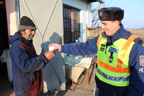 A Tolna megyei rendőrök a hideg időre való tekintettel folyamatosan ellenőrzik a települések közterületein tartózkodó fedél nélkülieket. Az intézkedések során az utcán tartózkodók ellátottságát, a nappali melegedés, az éjszakai szállás megoldottságát is figyelemmel kísérik, valamint meleg teával kínálják a fedél nélkülieket. Szükség esetén tájékoztatást adnak, vagy biztonsági intézkedést alkalmaznak.