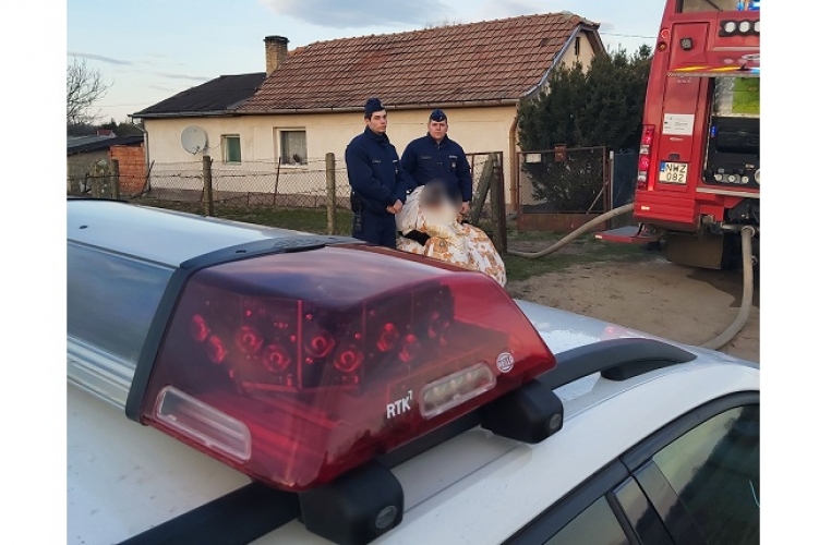 A debreceni járőrök kézben vitték ki a bajbajutott nőt az égő házból.