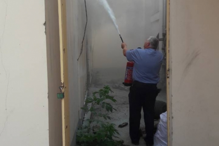 A körzeti megbízottak porral oltó készülékkel oltották a tüzet Tiszasülyön az általános iskolában.