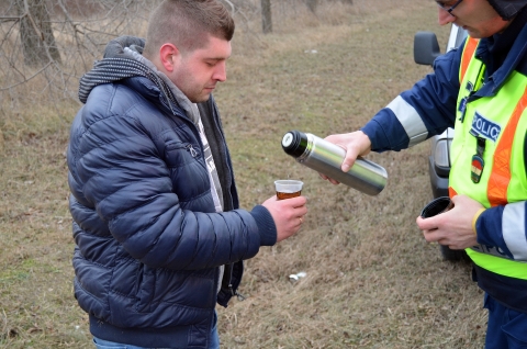 A baleset után, a hideg szélben várakozókat a bajai rendőrök az ellátmányként kapott meleg teából kínálták meg.