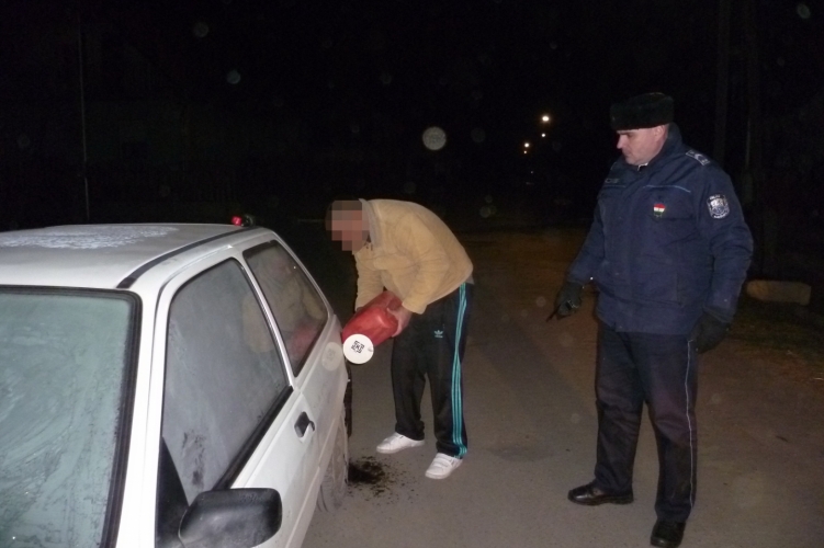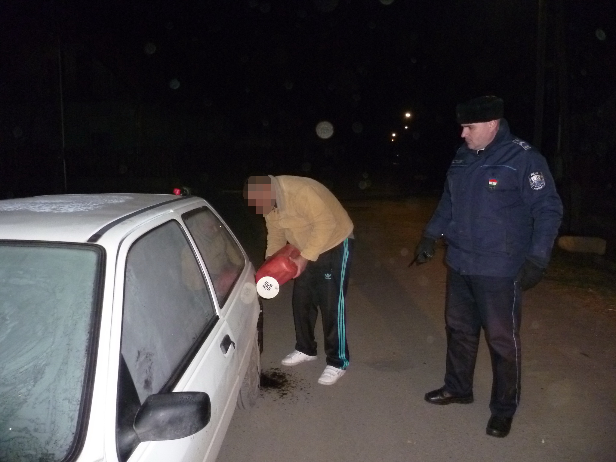 A rendőrök Jászkisérről Jászberénybe, a legközelebbi üzemanyagtöltő állomásra vitték egy lerobbant gépkocsi vezetőjét, hogy üzemanyagot tudjon vásárolni.