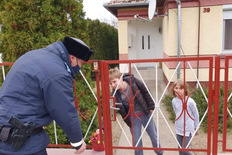 A Mikulás is csatlakozott a balotaszállási körzeti megbízottakhoz, akik a karanténban lévő általános iskolások ellenőrzése alkalmával házhoz vitték az iskolai mikuláscsomagokat.