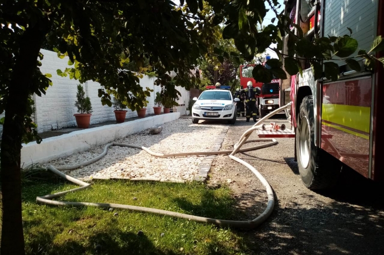 A családi ház alsó szintjén található garázsban tűz ütött ki, ezért azonnal értesítették a hivatásos és önkéntes tűzoltókat. A helyiségben több gázpalack is volt, így azokat haladéktalanul kivitték a helyiségből, és egy kerti locsoló segítségével megkezdték a tűz oltását.