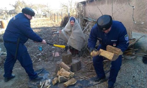 Az izsáki rendőrök tűzifát vágtak és takaróval melegítették fel az idős asszonyt.