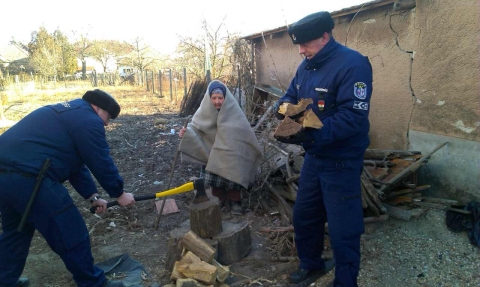 A Kiskőrösi Rendőrkapitányság Izsáki Rendőrőrs járőrei 2017. január 7-én a délelőtti órákban szolgálatteljesítés közben azt tapasztalták, hogy az egyik tanya kéményéből nem jön füst és az udvaron vágatlanul áll a tűzifa. Az egyedül élő 94 éves asszony elmondta, hogy a nagy rönköket nem tudta felvágni, így nem tudott begyújtani. A rendőrök felajánlották a segítségüket, a szolgálati autóban lévő takaróval betakarták, hogy felmelegedjen. Majd felhasogatták a fát és bekészítették a kihűlt ingatlanba, hogy az idős asszony a hideg napokon tudjon fűteni.