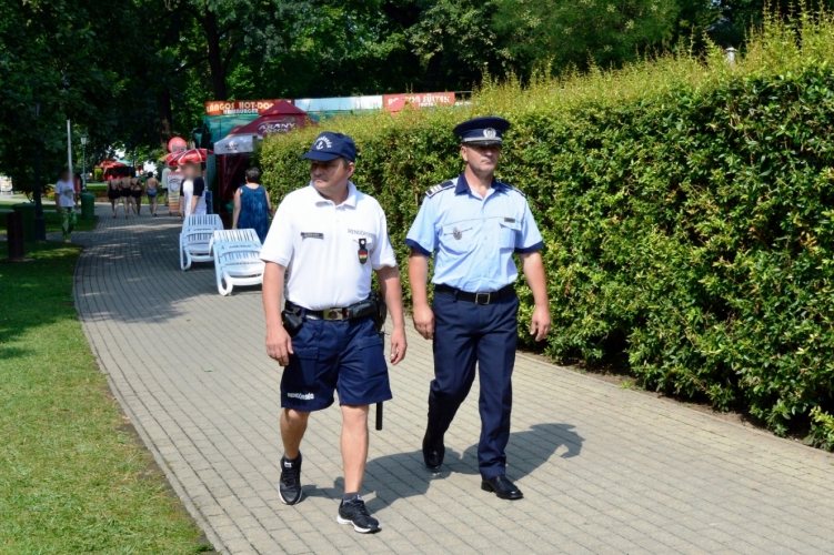 Gyulán, a Várfürdőben és környékén strandrendőr vigyáz a fürdőzők biztonságára. A kiemelt szezonban román rendőr is segíti a munkáját.