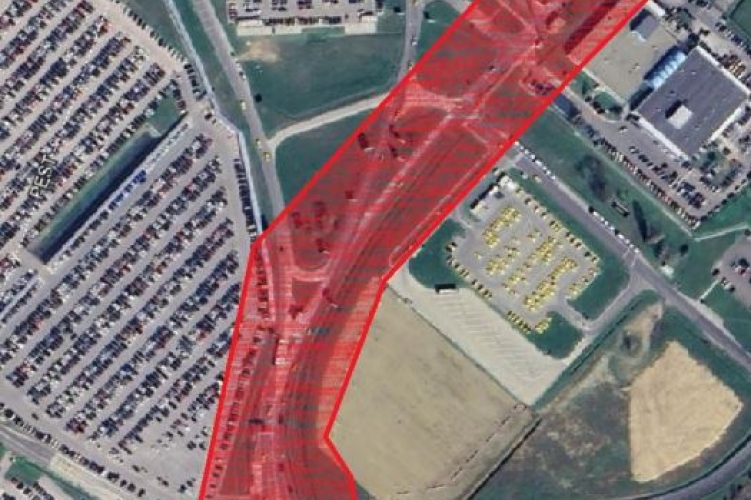 A 4. számú út csomópontjától az „E” portáig vezető út melletti földterület 30 méter szélességben, míg a többi út teljes földterülete lezárásra kerül.