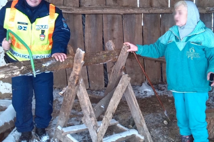 A Nyíregyházi Rendőrkapitányság Ibrányi Rendőrőrsének körzeti megbízottjai az Ibrány és Buj települések közötti tanyákon járőröztek a napokban, amikor egy idős asszonnyal találkoztak. A rendőrök ellapátolták háza elől a havat és felaprították tűzifáját, amiket az asszony egymaga nem tudott volna elvégezni.