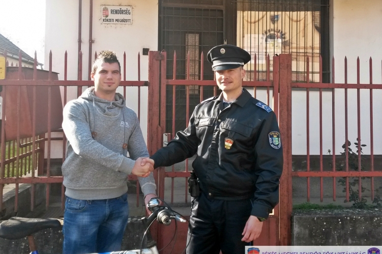 A Mezőkovácsházi Rendőrkapitányság Kevermesi Rendőrőrsének egyik körzeti megbízottja, Tóth István r. főtörzsőrmester 2014. november 6-án Kunágota és Kisdombegyház között igazoltatott egy kunágotai férfit. A 23 éves fiatalember egy olyan kerékpárral közlekedett, mely a körzeti megbízott számára ismerős volt. Azt is tudta, hogy ki szokta használni, de a dombegyházi férfit nem érte el, nem tudott vele beszélni. Elszámoltatta a fiatalembert, aki azt mondta, hogy a kerékpárt az egyik kocsma mellett a fűben találta. A rendőr lefoglalta és a körzeti megbízotti iroda udvarára vitte a biciklit. Másnap, 2014. november 7-én Tóth István körzeti megbízottnak jelentette be a kerékpár tulajdonosa, hogy a település központjában lévő buszmegállóból ellopták a lezárt biciklijét. A rendőr megnyugtatta a férfit és közölte vele, hogy a kétkerekűt valószínűleg már meg is találták. Miután a bejelentő a körzeti megbízotti irodánál megnézte és felismerte a lopott kerékpárt, a körzeti megbízott vissza is adta neki. A Mezőkovácsházi Rendőrkapitányság az ügyben lopás vétség gyanúja miatt rendelt el nyomozást, melynek során vizsgálják, hogyan került a kerékpár ahhoz a kunágotai férfihez, akitől lefoglalták.